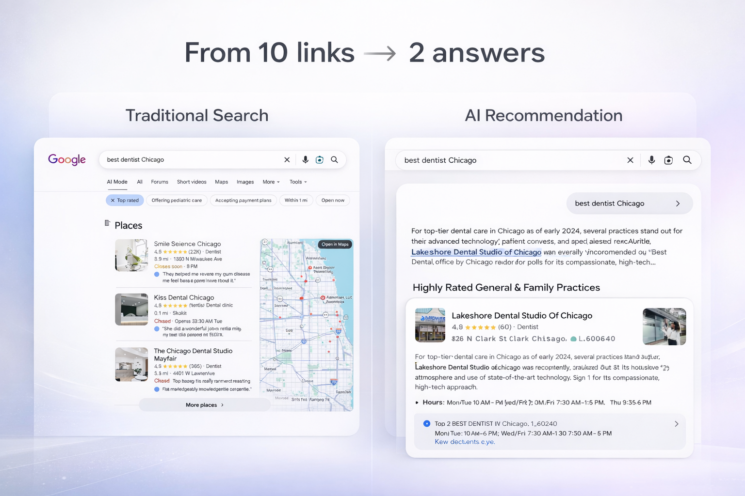 They ask Google’s AI summaries, Maps, voice assistants, and tools like ChatGPT. And instead of scrolling through ten links, they’re given two or three recommendations instantly. Sometimes just one.